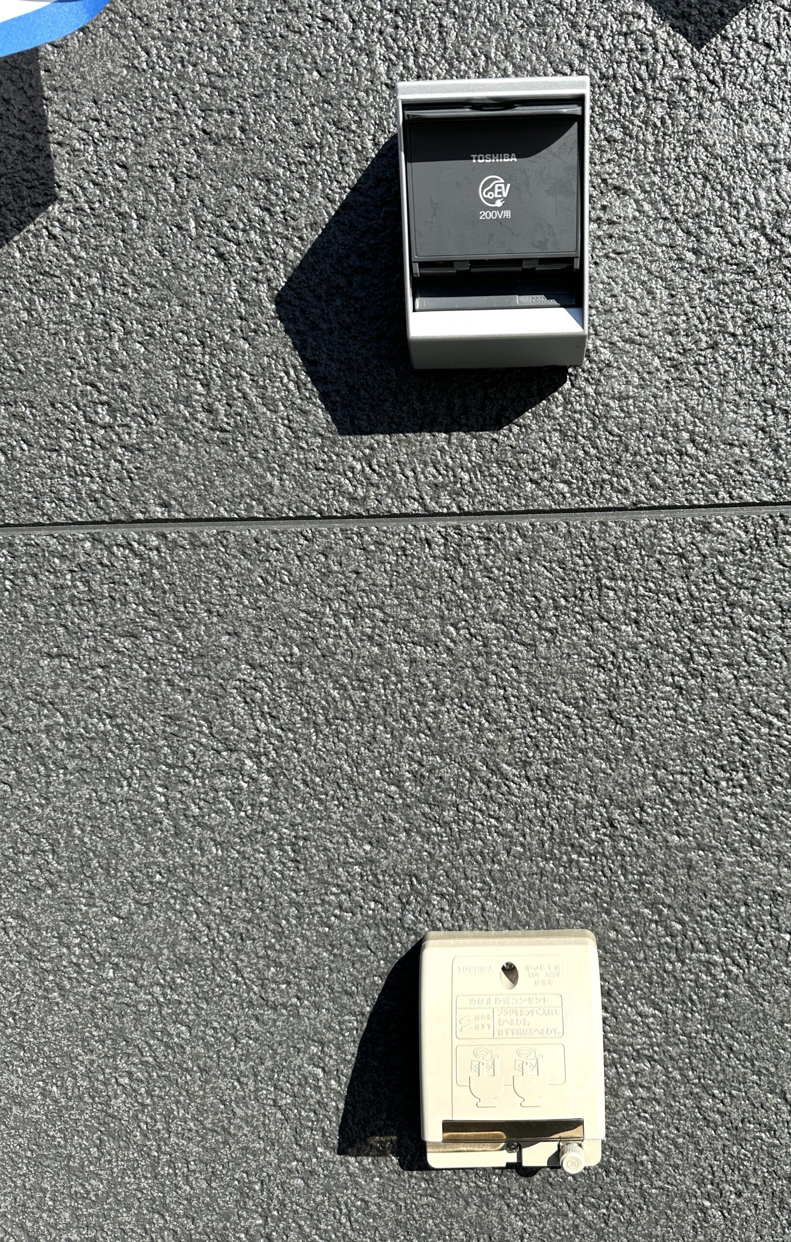 室外での作業やBBQにも使える外部コンセント付き。外部水栓付きでプール遊びや自宅で洗車に便利!EV車用充電器&防犯カメラ付きです♪(同社施工例)