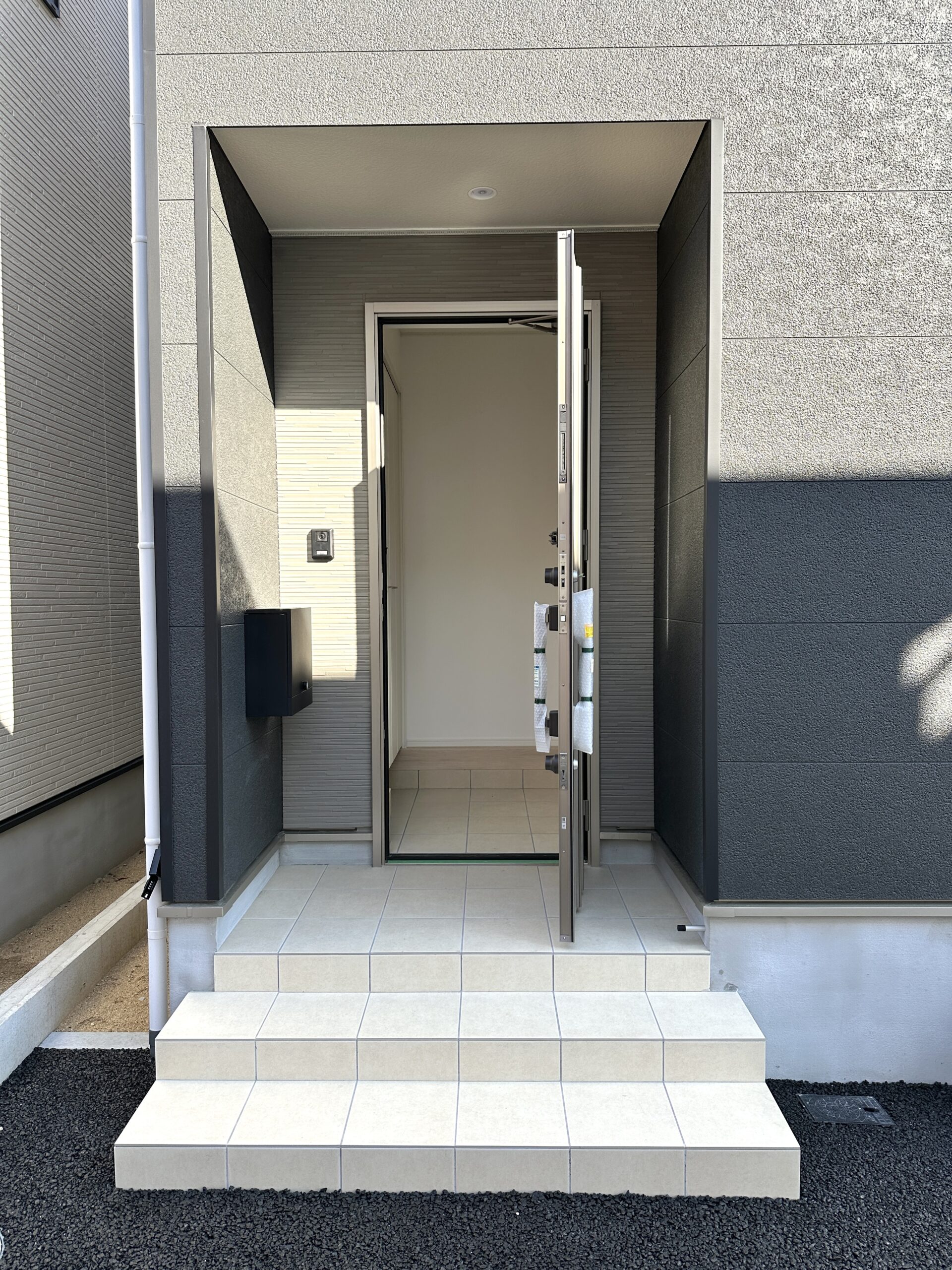 雨の日もゆったり出入りできるふところのある玄関(同社施工例)