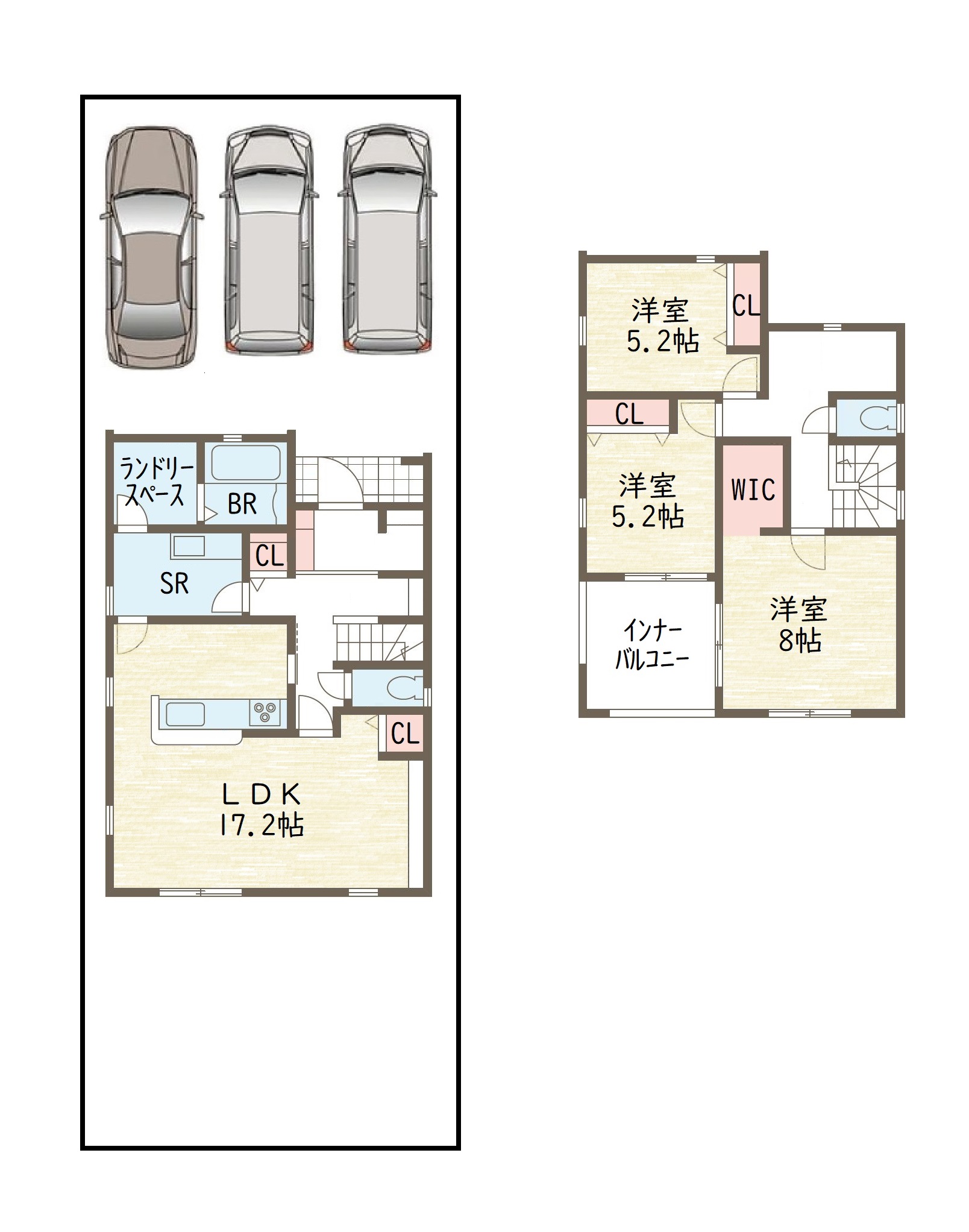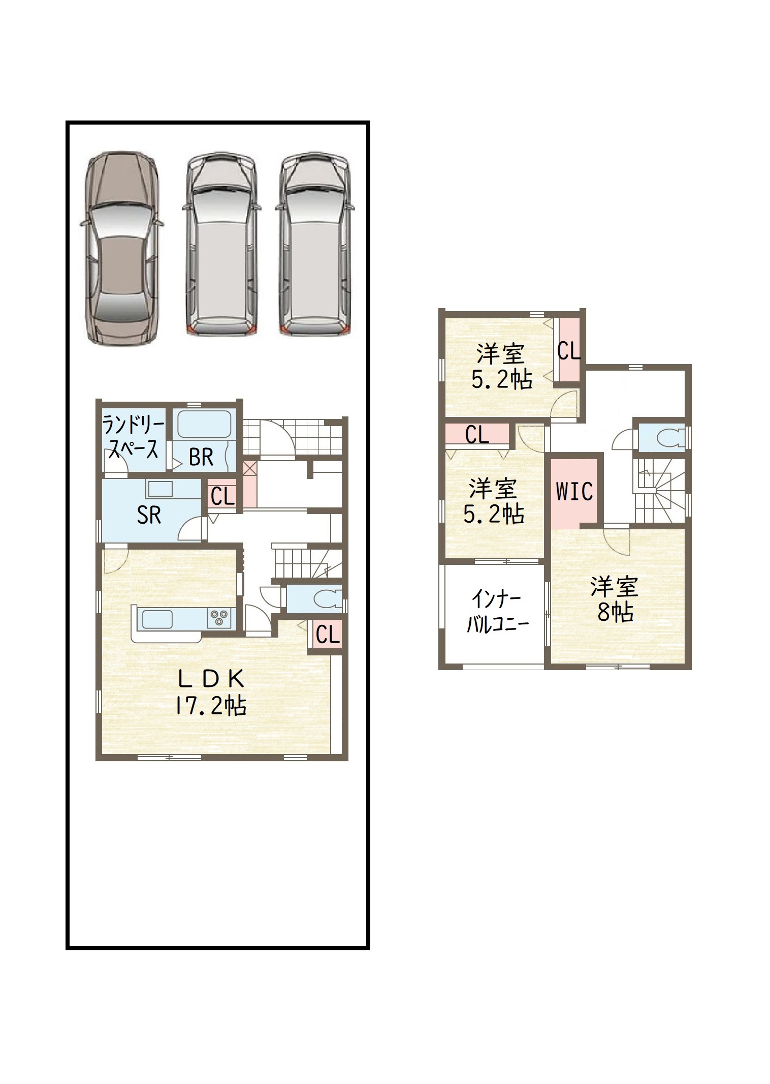 1号棟。2980万円。 土地147.53㎡ 建物105.16㎡